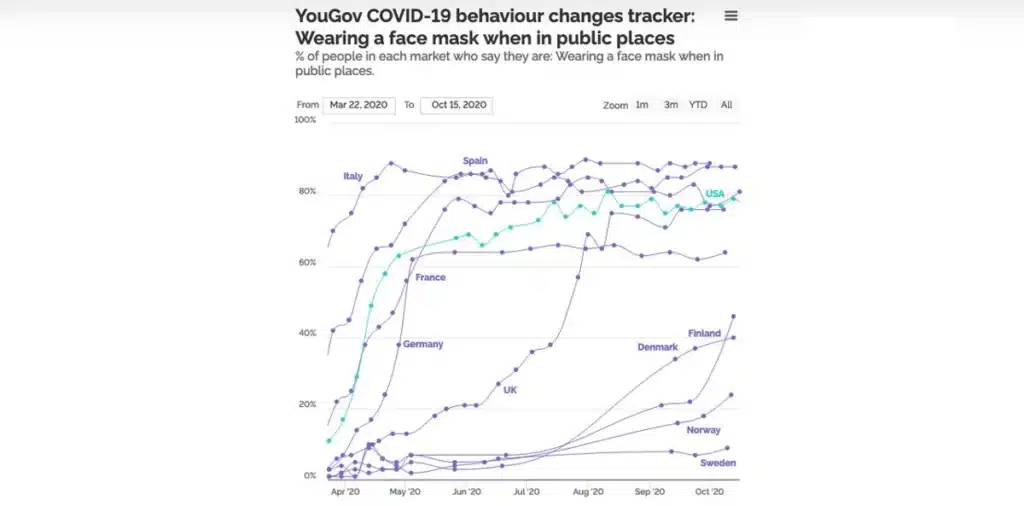 Now we need to look at the USA. Despite no mandates in many states, the USA remained near the top of mask-wearing compliance.